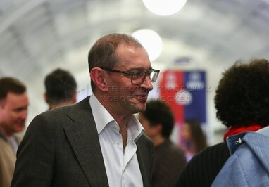 Ректор Школы-студии МХАТ Игорь Золотовицкий во время торжественного запуска тематического поезда Московского художественного академического театра (МХТ) имени Чехова в Московском метрополитене.