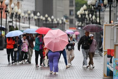 Дождливая погода в Москве. Женщина с мобильным телефоном.