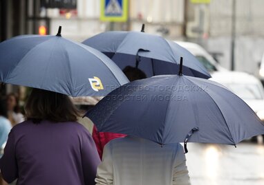 Дождливая погода в Москве 28 июля 2023 года. Девушка разговаривает по мобильному телефону.