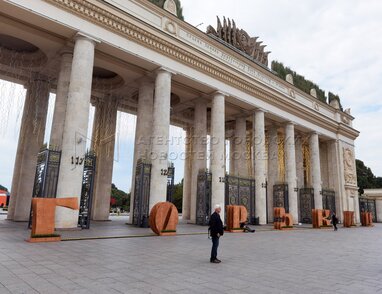 Арт-инсталляция «Время вперед» в честь 95-летия Парка Горького, расположенная у его главного входа.