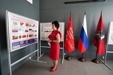 Первый заместитель председателя Московской областной Думы Лариса Лазутина во время открытия первого Московского геральдического форума в библиотеке №3 имени Добролюбова.