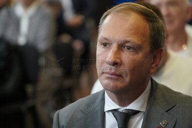 Руководитель Департамента культуры города Москвы Александр Кибовский во время открытия первого Московского геральдического форума в библиотеке №3 имени Добролюбова.