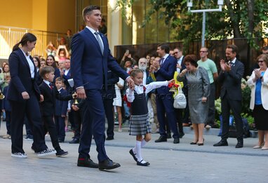 Торжественная линейка с участием министра просвещения РФ Сергея Кравцова в московской школе №1529