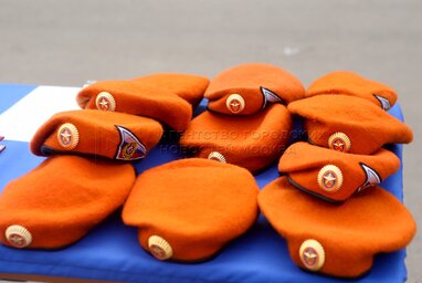 Министр РФ по делам гражданской обороны, чрезвычайным ситуациям и ликвидации последствий стихийных бедствий (МЧС) Александр Куренков (второй слева) во время присяги и торжественной клятвы курсантов и студентов академии ГПС МЧС России на ВДНХ.