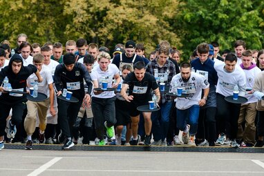 Забег официантов с подносами на Московском урбанистическом форуме.