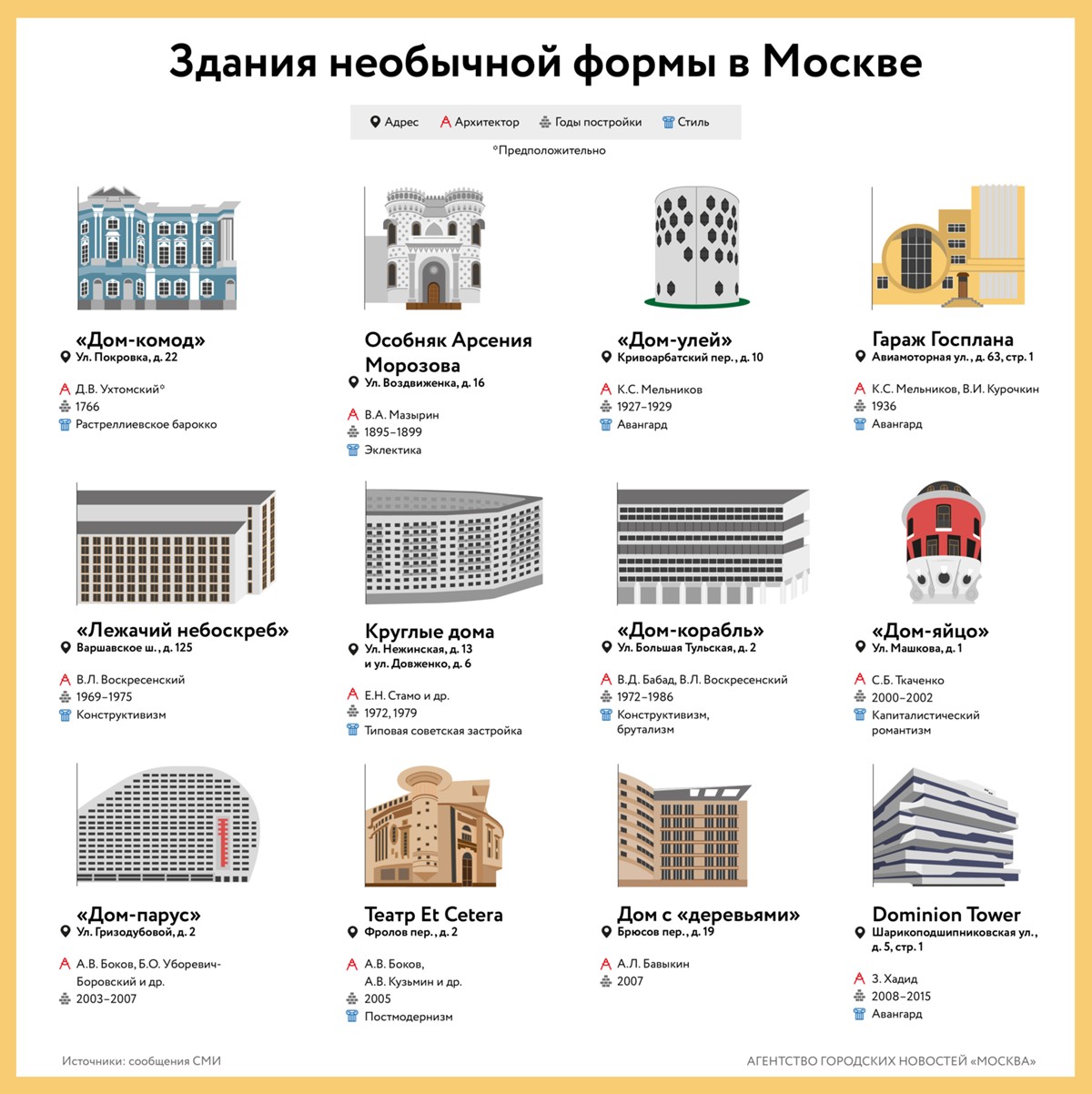 Здания необычной формы в Москве