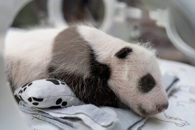 Осмотр детеныша панды в Московском зоопарке