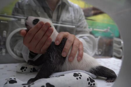 Осмотр детеныша панды в Московском зоопарке. Фото предоставлено пресс-службой зоосада.