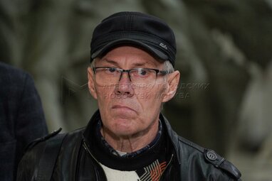 Скульптор Михаил Баскаков во время презентации модели памятника героям «Молодой гвардии» на базе художественного комбината в Химках.