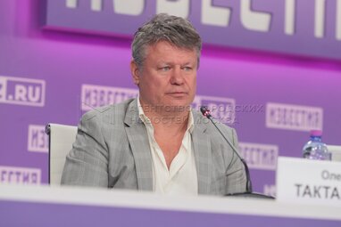 Спортсмен, актер, телеведущий, кинопродюсер, режиссер Олег Тактаров во время пресс-конференции к финалу всероссийского турнира по длинным нардам.