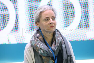 Заместитель руководителя Департамента культурного наследия города Москвы Юлия Логинова во время открытия выставки «ПРОреставрацию. Импортозамещение в реставрационных материалах и технологиях» в здании типографии Сытина.