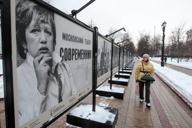 Выставка архивной фотографии на Чистопрудном бульваре, посвященная 90-летию со дня рождения актрисы и режиссера, народной артистки СССР Галины Волчек.