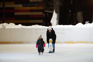 Открытый каток в саду имени Баумана в центре Москвы.