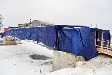 Строящийся пешеходный мост между стрелкой острова Балчуг и Крымской набережной. Фото: Максим Мишин, пресс-служба мэра и правительства Москвы.