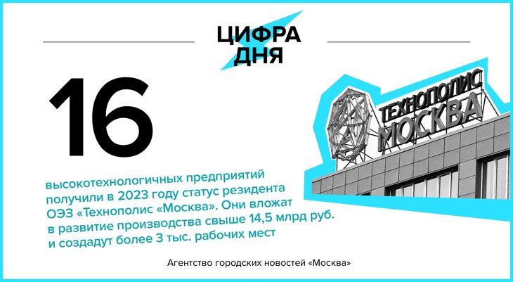 Цифра дня 15 февраля: 16 высокотехнологичных компаний стали в 2023 году резидентами технополиса «Москва».