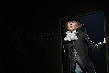 Актер Андрей Кондаков в роли Маскариля, слуги Валера во время премьерного показа спектакля «Любовная досада» в московском театре Et Cetera.
