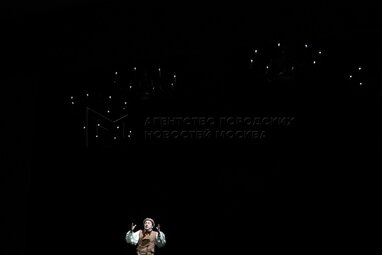 Актер Павел Суханов в роли слуги просцениума во время премьерного показа спектакля «Любовная досада» в московском театре Et Cetera.