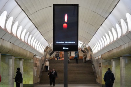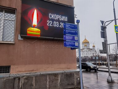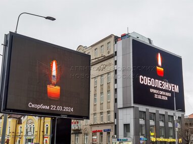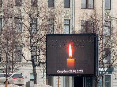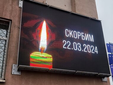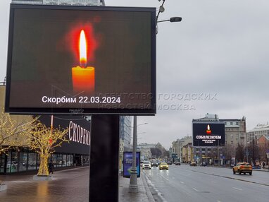 Уличные медиаэкраны в столице в память о жертвах теракта в подмосковном Crocus City Hall