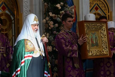 Патриарх Московский и всея Руси Кирилл во время Божественной литургии в храме равноапостольного князя Владимира.