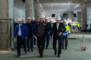 Мэр Москвы Сергей Собянин осмотрел строящуюся станцию «Народное Ополчение» Рублево-Архангельской линии столичного метрополитена. Фото: Владимир Новиков, пресс-служба мэра и правительства Москвы.