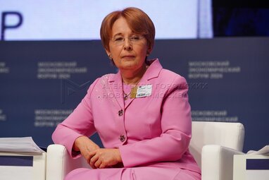 Член Комитета Госдумы РФ по бюджету и налогам Оксана Дмитриева во время пленарной дискуссии «Экономика: новая реальность – новые подходы» на Московском экономическом форуме – 2024 в Цифровом деловом пространстве.