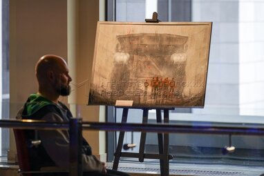 Картина «Пятипалые краги. С гарантией» (автор Дарья Колмыкова, 2023 г.) на территории Цифрового делового пространства.