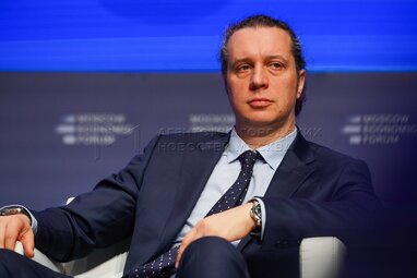 Генеральный директор ООО «Машиностроительный завод «Тонар» Денис Кривцов во время пленарной дискуссии «Экономика: новая реальность – новые подходы» на Московском экономическом форуме – 2024 в Цифровом деловом пространстве.