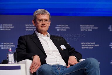 Директор Института народнохозяйственного прогнозирования РАН Александр Широв во время пленарной дискуссии «Экономика: новая реальность – новые подходы» на Московском экономическом форуме – 2024 в Цифровом деловом пространстве.