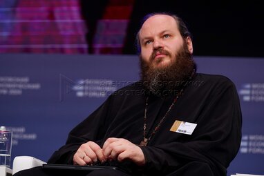 Священнослужитель Русской православной церкви, проповедник, миссионер Павел Островский во время пленарной дискуссии «Культура и пропаганда: новая реальность – новые люди» на Московском экономическом форуме – 2024 в Цифровом деловом пространстве.
