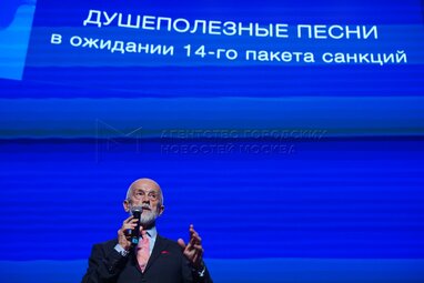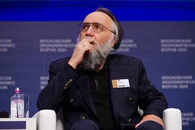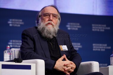 Философ, политолог и социолог Александр Дугин во время пленарной дискуссии «Культура и пропаганда: новая реальность – новые люди» на Московском экономическом форуме – 2024 в Цифровом деловом пространстве.