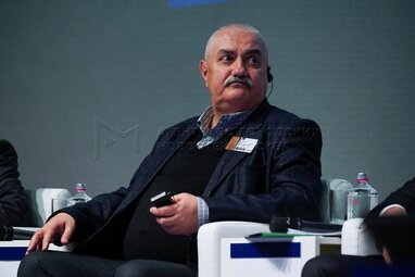 Директор Центра российских исследований факультета международных отношений Ереванского государственного университета, председатель общественной организации «Интеграция и развитие» Арам Сафарян во время сессии «Евразийские транспортные коридоры» на Московском экономическом форуме – 2024 в Цифровом деловом пространстве.