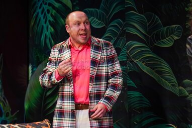 Актер Владимир Шульга в роли Сидни Траша во время пресс-показа спектакля «Мой дом – твой дом» в Театре на Трубной.