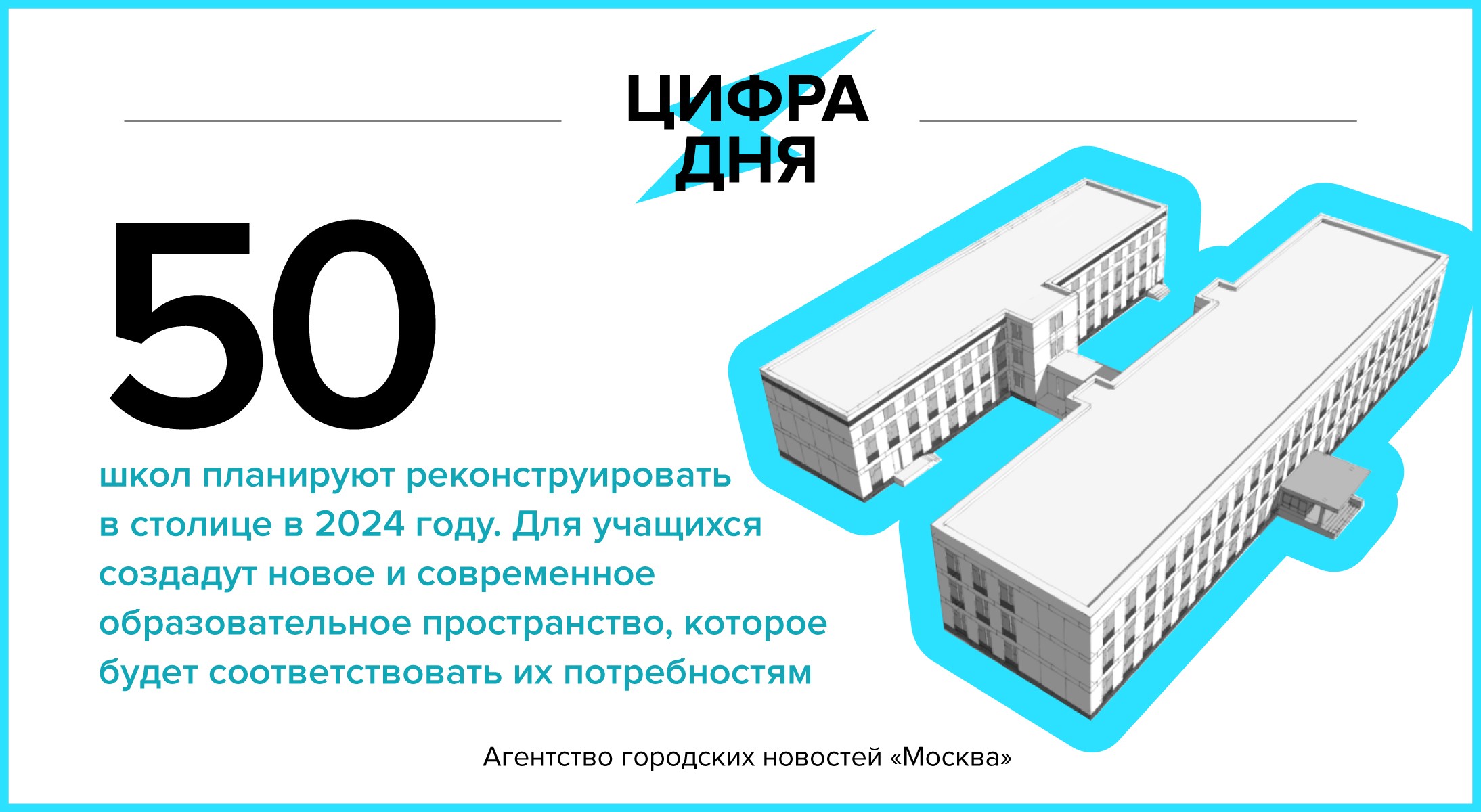 Цифра дня 9 апреля: 50 школ планируют реконструировать в столице в 2024 году.