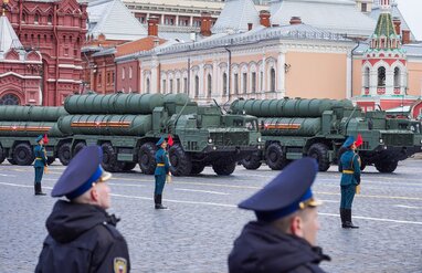 Зенитные ракетные системы С-400 «Триумф» во время военного парада, посвященного 79-й годовщине Победы в Великой Отечественной войне на Красной площади.
