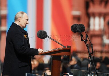 Президент РФ Владимир Путин во время военного парада, посвященного 79-й годовщине Победы в Великой Отечественной войне на Красной площади.