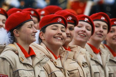 Парадный расчет движения «Юнармия» во время военного парада, посвященного 79-й годовщине Победы в Великой Отечественной войне на Красной площади.