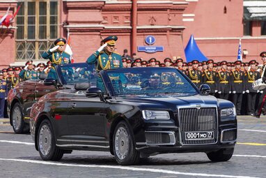 Автономная пусковая установка ПГРК «Ярс» (слева) во время военного парада, посвященного 79-й годовщине Победы в Великой Отечественной войне на Красной площади.