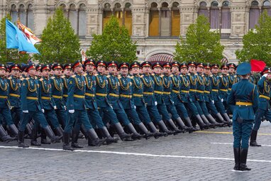 Парадный расчет Рязанского высшего воздушно-десантного командного училища имени В. Ф. Маргелова во время военного парада, посвященного 79-й годовщине Победы в Великой Отечественной войне на Красной площади.