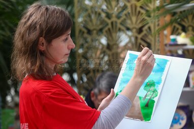 Мастер-классы и отдыхающие на площадке фестиваля «Московская весна» на Площади Революции.