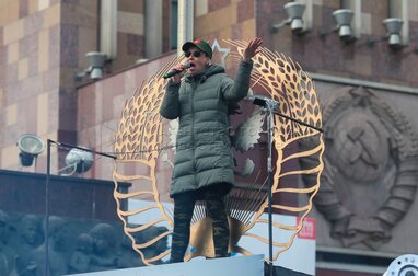 Певица Юлия Чичерина выступает на площадке у монумента «Рабочий и Колхозница» во время открытия мотосезона байкерского клуба «Ночные волки».