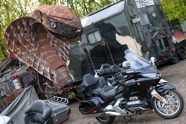 Монумент «Рабочий и Колхозница» во время открытия мотосезона байкерского клуба «Ночные волки».