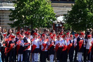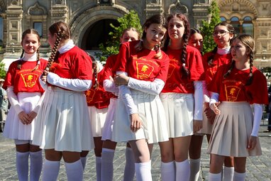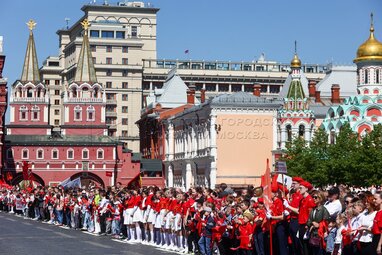Торжественная церемония приема в пионеры на Красной площади школьников из Москвы, Московской области и регионов Центрального федерального округа.