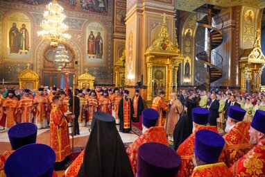Божественная литургия в праздник перенесения мощей святителя и чудотворца Николая из Мир Ликийских в Бар в Спасо-Преображенском соборе Николо-Угрешского ставропигиального мужского монастыря.