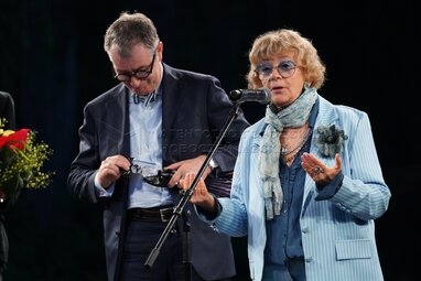 Режиссер Алла Сурикова и ректор ГИТИСа Григорий Заславский на XXXIII церемонии награждения первой театральной премией «Хрустальная Турандот» в музее-усадьбе «Архангельское».