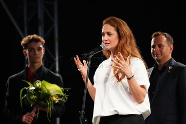 Актриса Аглая Шиловская на XXXIII церемонии награждения первой театральной премией «Хрустальная Турандот» в музее-усадьбе «Архангельское».