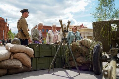 Площадка XII Московского исторического фестиваля «Времена и эпохи» в кинопарке «Москино» c локацией, посвященной обороне Москвы 1941 года.