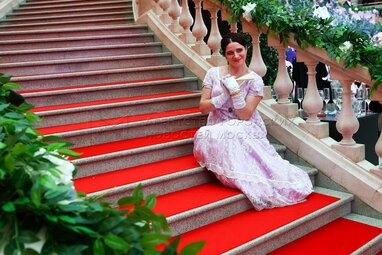 Ведущая Пушкинского бала – актриса Екатерина Гусева. «Пушкинский бал» в Гостином дворе в рамках финала Международного молодежного конкурса дизайнеров, модельеров одежды и театральных художников на лучший костюм, вдохновленный героями произведений А.С. Пушкина.