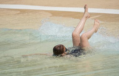 Отдых горожан в жаркую погоду в пляжной зоне Dream Beach Club в Нагатинской пойме