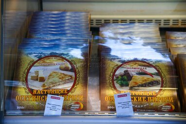 Витрина с осетинскими пирогами. Гастрономический фестиваль «Вкусы России» на ВДНХ.