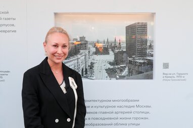 Управляющий партнер девелоперской компании VOS’HOD Марина Руднева. Работы по реставрации фасада здания Центрального телеграфа и советского герба над главным входом.